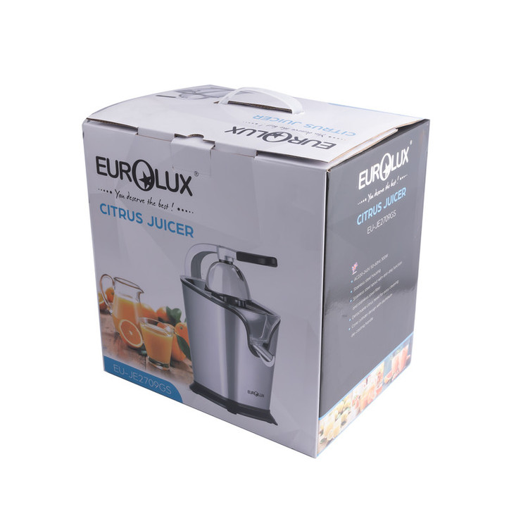 آب مرکبات گیری 300 واتی یورولوکس JE2709GS علاوه بر قدرت و کارایی بالا به بدنهای مستحکم و ظاهری زیبا مجهز شده است. بدنه این محصول مانند دهانه و فیلتر آن از جنس استیل ضدزنگ است.اگر به محصولات با کیفیت و خوش ساخت علاقه دارید، این مدل را حتما در لیست انتخابتان قرار دهید. قطعات این دستگاه برای سهولت استفاده و شست و شو، جداشونده می باشد. طراحی این دستگاه به گونه اس است که پایه های آن هنگام استفاده حالت لغزندگی نداشته باشد و مایعی از آن بیرون نریزد.