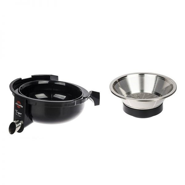 آبمیوه گیری پارس خزر مدل تایگر 700W بدنهای ترکیبی از استیل و پلاستیک دارد و ترکیب رنگ مشکی، استیل و پلاستیکهای شفاف ظاهر آن را زیبا و جذاب میکنند. موتور قدرتمند این دستگاه توسط پیچ تنظیم در دو سرعت فعالیت میکند. تیغهها و فیلتر این آبمیوه گیری از جنس استیل ضد زنگ هستند و کیفیت ساخت بالایی دارند. میوههای درشت مانند سیب از طریق دهانهی ورودی بزرگ وارد دستگاه میشوند و به این ترتیب نیازی به ریز کردن میوهها نیست. همچنین، تفالهی میوه به مخزن تفاله منتقل میشود و آبمیوه ا ...